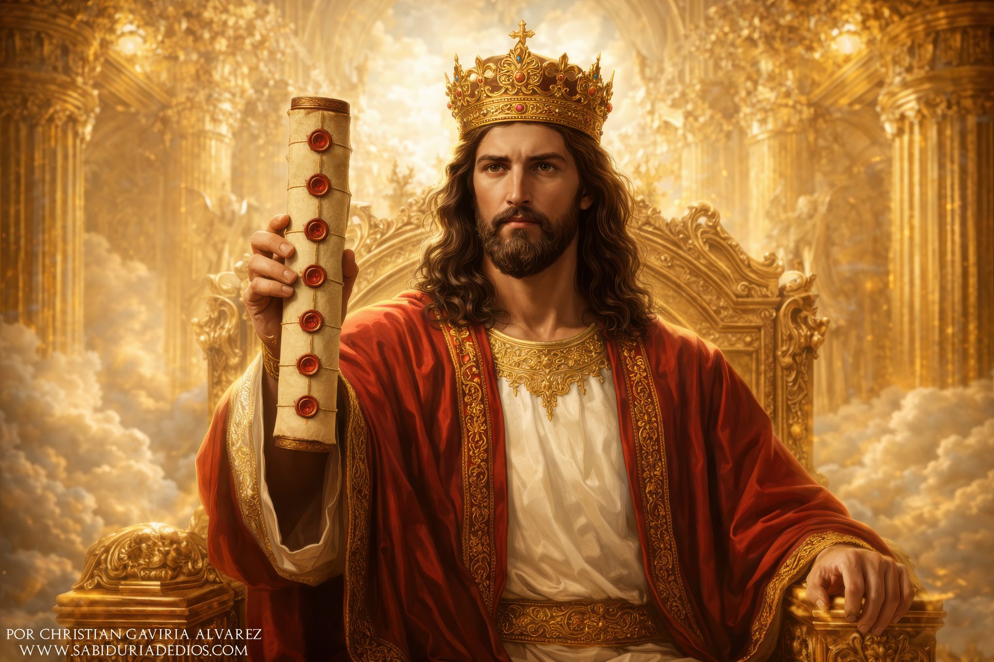 Y luego el Mashiaj abrirá el séptimo y último sello del Apocalipsis, que luego serán las siete trompetas del Apocalipsis. Y así se revelará el contenido del pergamino, que simboliza que el reinado oculto del Mashiaj ya será visible en la tierra. Y él reinará por 1.000 años literales sobre la tierra.